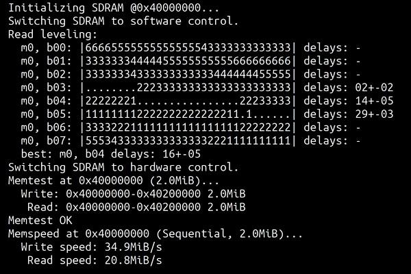Writing of the work required, Hans explains that "the LiteDRAM BIOS helped me so much to pin down what the issue was, by inserting some debug printf's. Actually the mem_read/mem_write already gave it away, but the SDRAM debug functions in the BIOS were very helpful for me to understand what was happening."