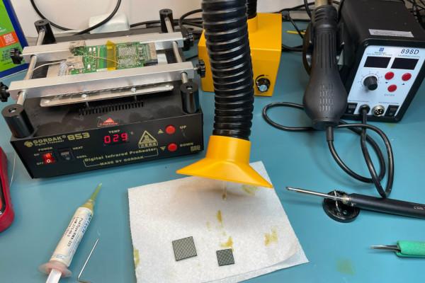 "Reworking requires wicking away the solder of only a few balls, then manually placing new flux and balls. It takes forever… And then it fails and you need to do it again, and again."