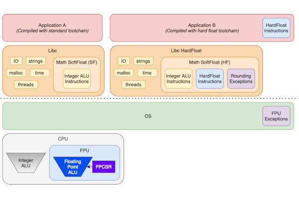 "So if the OpenRISC toolchain already has support for FPU instructions what else needs to be done? When we add FPU support to glibc we are adding FPU support to the OpenRISC POSIX runtime and create a toolchain that can compile and link binaries to run on this runtime. As we started to work on the floating point support we found two issues: the OpenRISC floating point control and status register (FPCSR) is accessible only in supervisor mode, and we have not defined how the FPU should perform tininess detection.