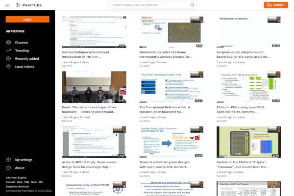 Videos of presentations from the Free Silicon Conference 2025 (FSiC2025) have now been uploaded to PeerTube, the federated video sharing platform.